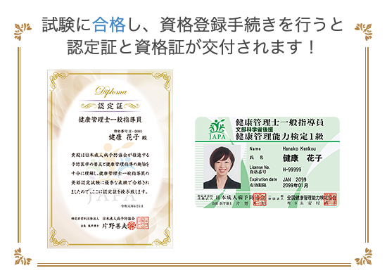 健康管理士、健康管理検定1級(後援:文部科学省 )の資格認定を行っております。